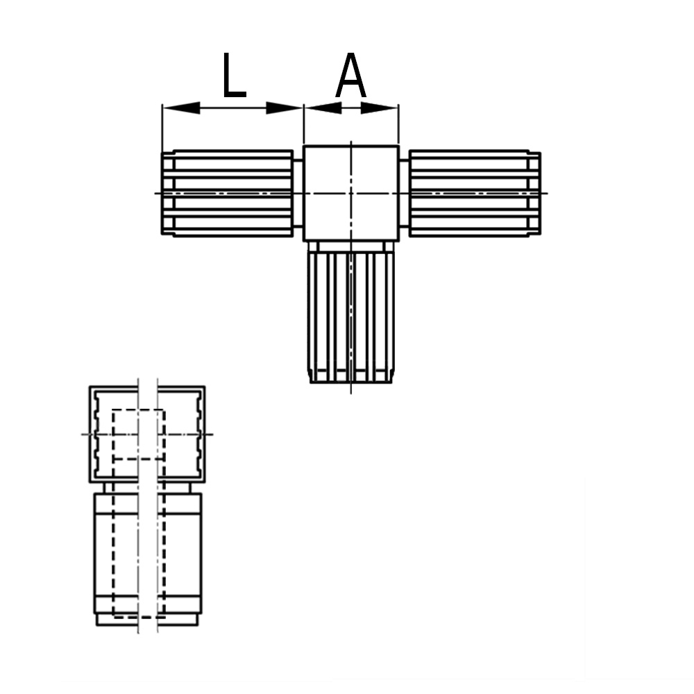 Tube connectors two-piece design 3D4 - multi-dimensional Tee