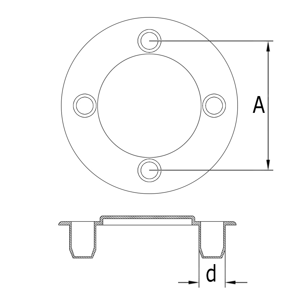 A=Pin/bolt circle, ANSI=ANSI size in inches, Class=Pressure class range in lbs, d=Ø-pin, DIN=DN-size