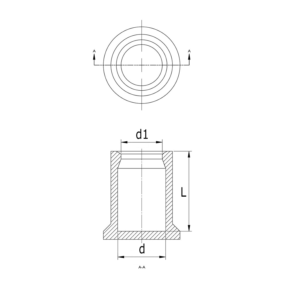 d=Inner-Ø, d1=Internal lip-Ø, L=Inner length, M=fits threadsize