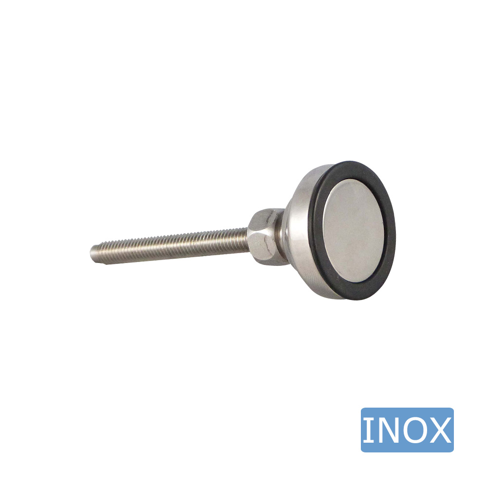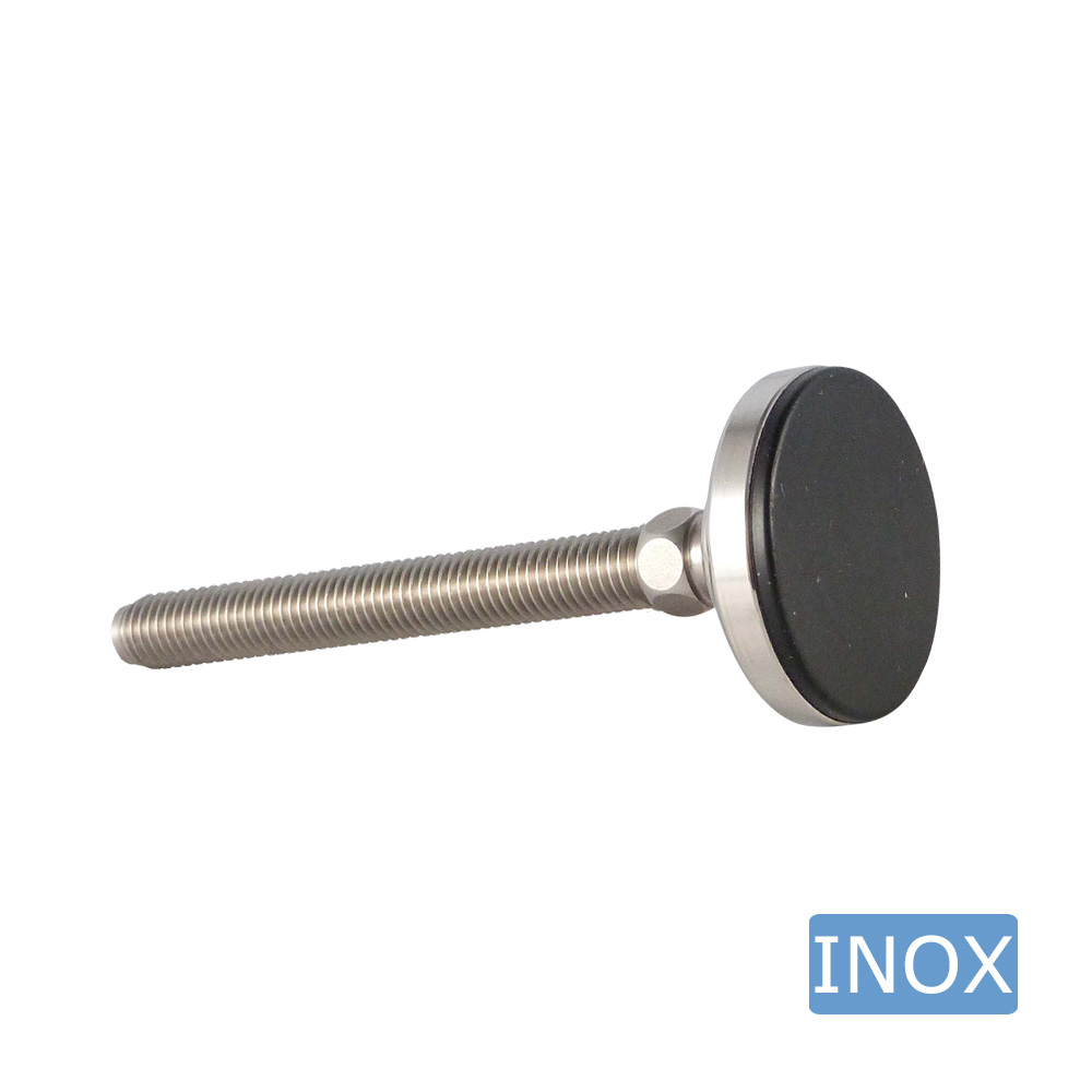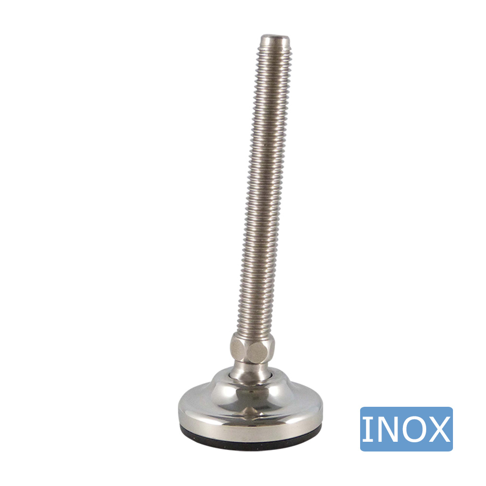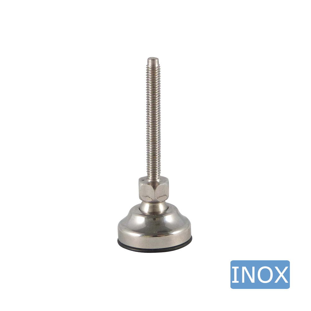 • Stainless steel levelling feet with ball joint and a solid stainless steel base with anti-slip sole are available with stainless steel threaded stems, thread size M6 to M36 inclusive, and thread lengths from 25 mm to 250 mm inclusive