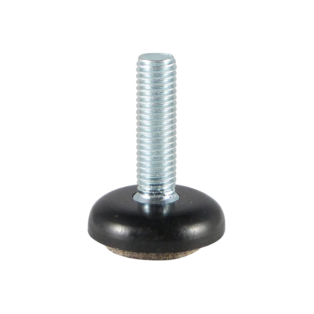 - Levelling feet with a fixed round plastic base and integral felt pad are available with threaded stems, thread size M6 to M10 inclusive, and effective thread lengths from 16 mm to 45 mm inclusive