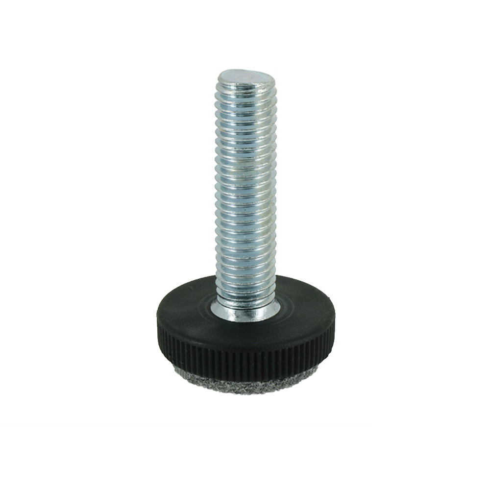 Adjusting screws with knurled plastic base 29mm and welded feltpad - M6X50/47 black