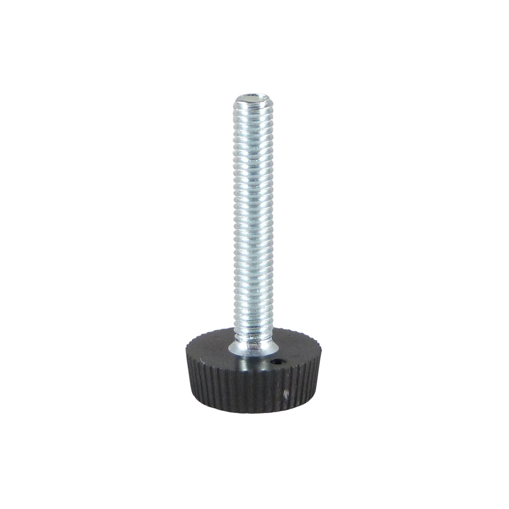 • Levelling feet with a knurled edge, also known as knurled screws, can be used as a height adjuster but also as an adjustment knob or adjuster screw. Mainly used for furniture such as tables and shelf racks, but also for equipment, tents, frames etc.