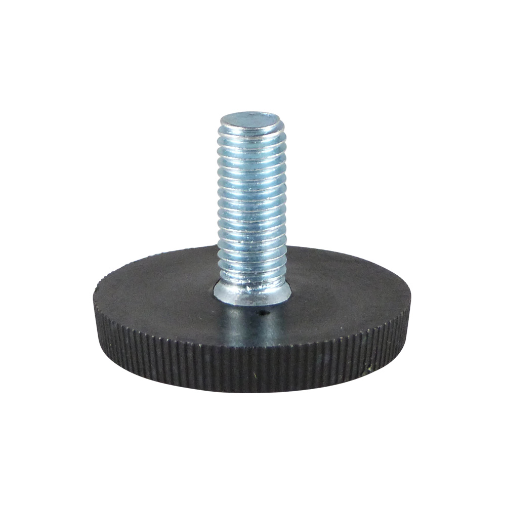 • Levelling feet with a fixed, finely knurled round base are available with threaded stems, thread size M4 to M10 inclusive, and thread lengths from 10 mm to 60 mm inclusive