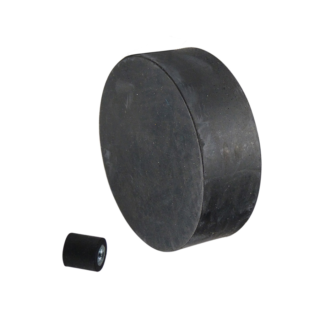 • Flat cylindrical rubber impact buffers are suitable for use as an elastic stroke limiter or as a foot for cushioning/damping impacts and jolts in machines, generators and compressors.