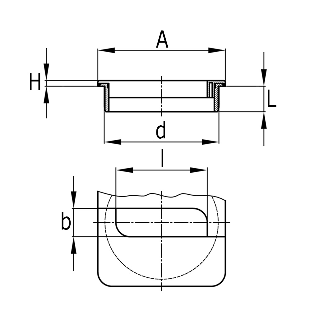 A=cover L x W, a=length of through hole, b=width of through hole, H=head height, L=shaft length