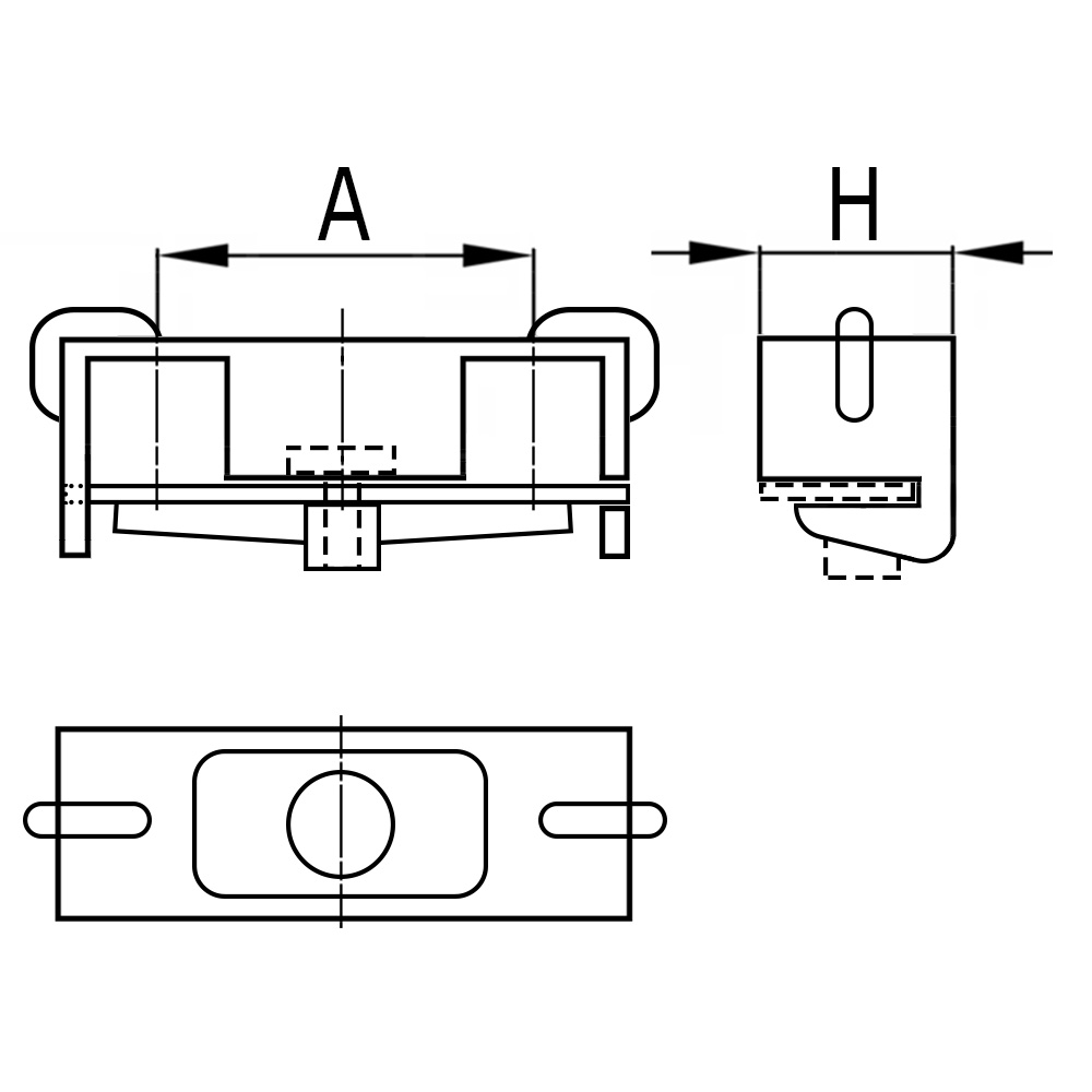 A=centre-to-centre dimension, H=width, Tube size=suitable for tubesize