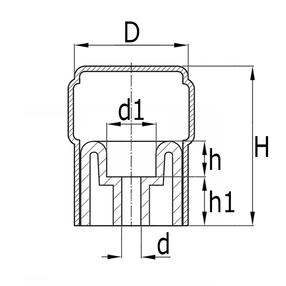 D=outside Ø, d=hole Ø, d1=countersink Ø, H=total height, h=depth of countersunk hole, h1=clearance hole length