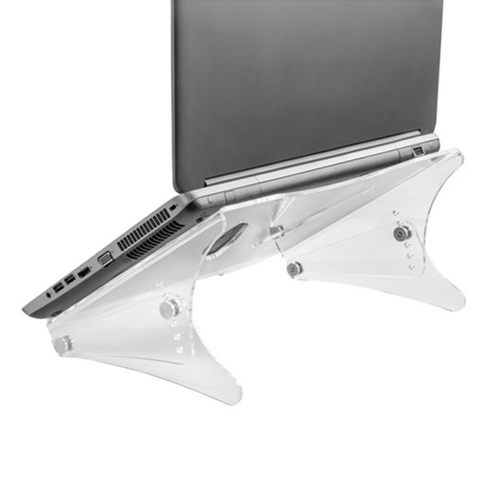 - This height adjustable acrylic laptop stand inclines and raises the screen of a notebook or laptop up to eye level