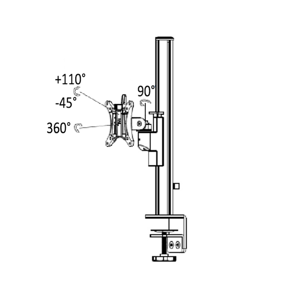 Monitor stand Galaxy - KIT: support post 450mm with short single bracket - incl. C-clamp and grommet base clamp - 1 monitor - white