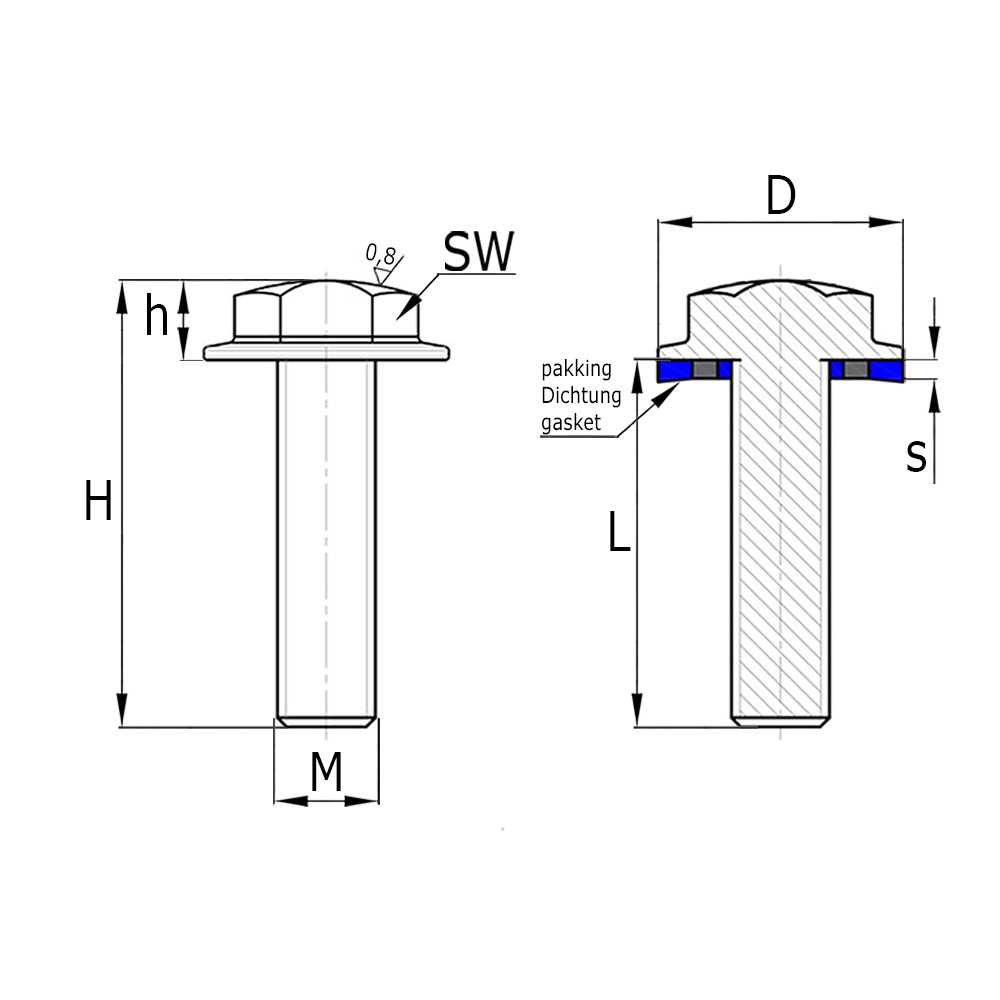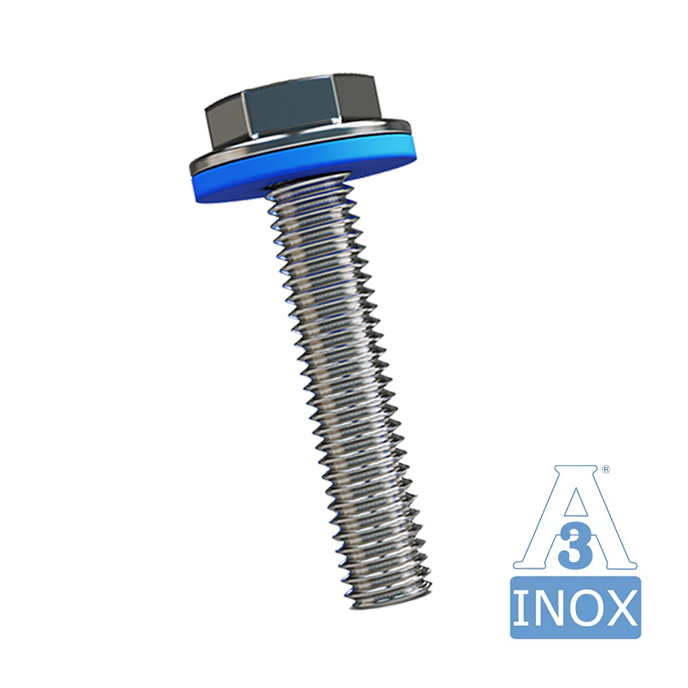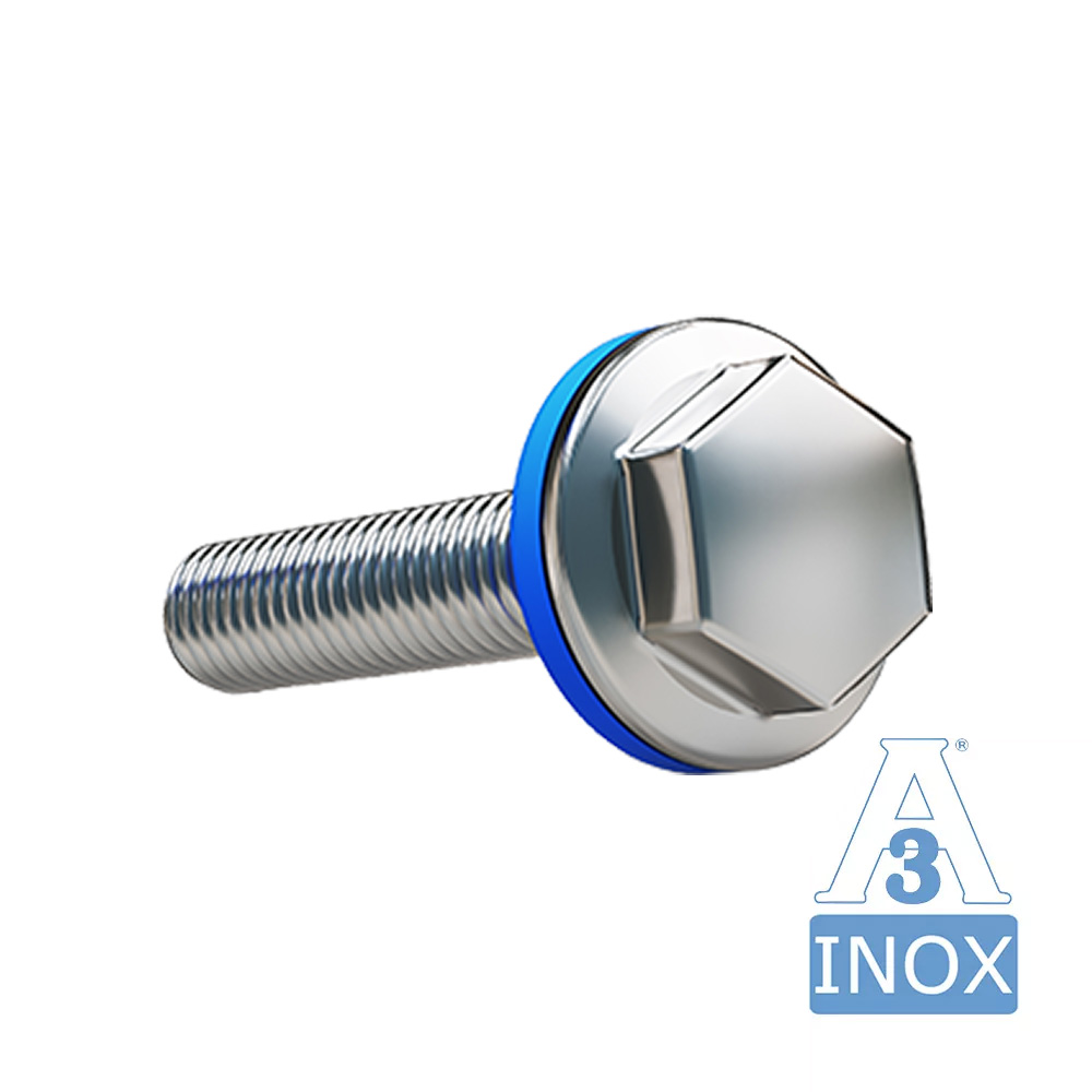 Hexagonal flange bolt hygiene 3A - stainless steel AISI316 with blue EPDM seal - M4x12