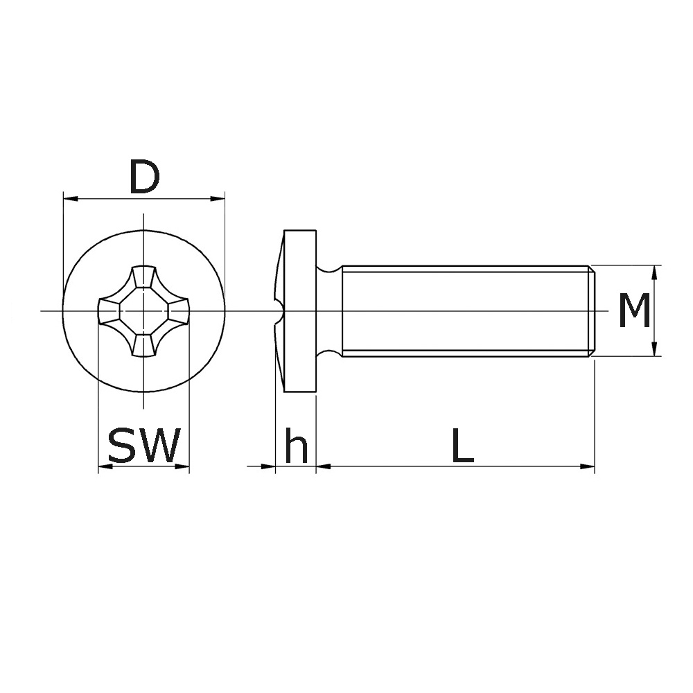 D=head Ø, h=head height, l=thread length, M=thread size, SW=spanner size in mm