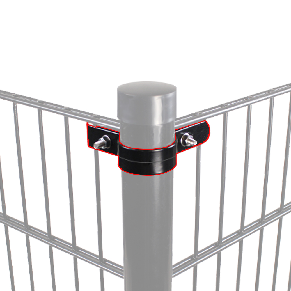 - Plastic long-lipped corner clamps for wire mesh fence panels are available for round fence posts of Ø60mm