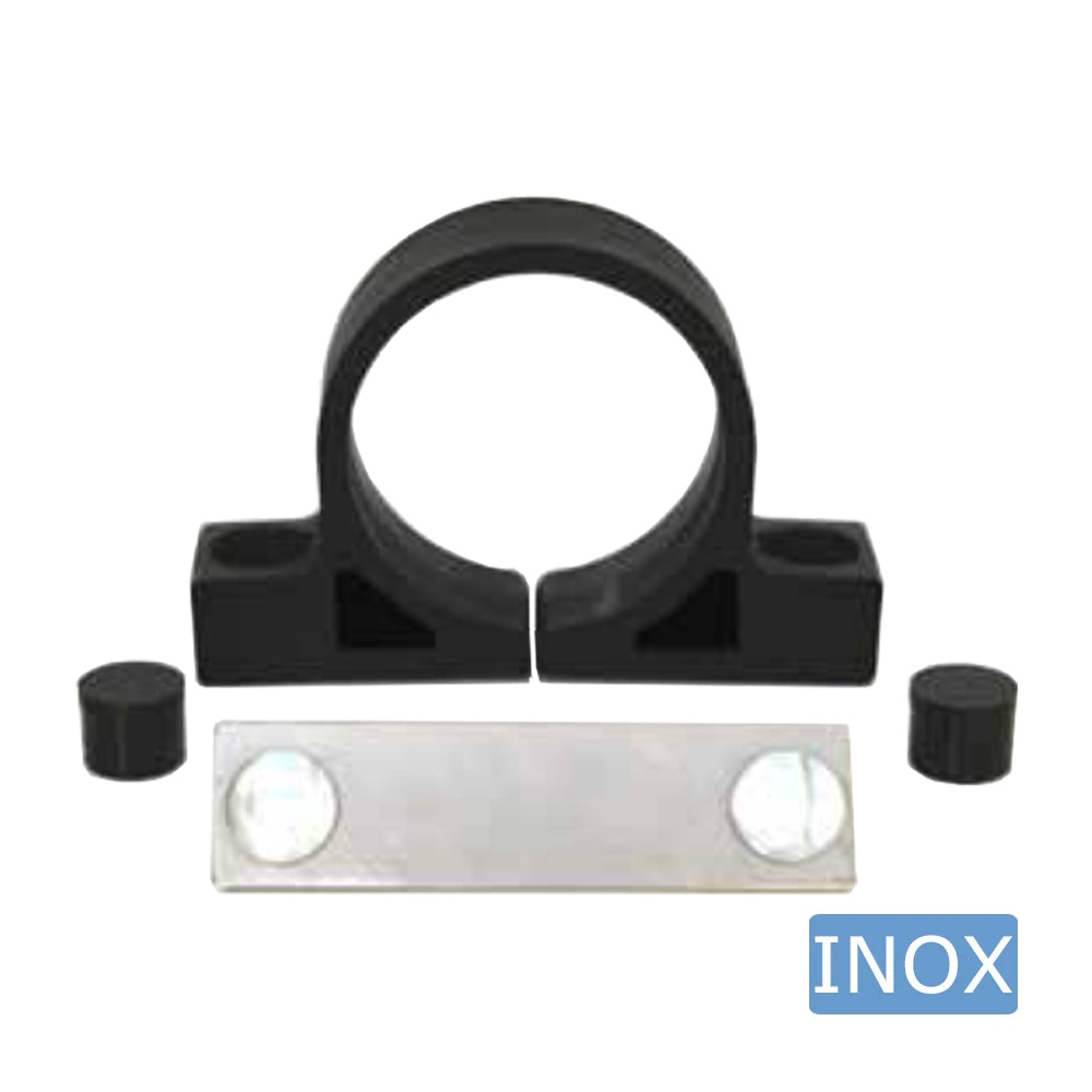 Plastic clamps Ø60mm with stainless steel fixing strip M6 - black