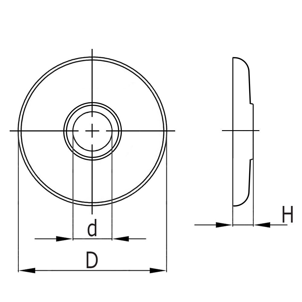 Tube size=suitable for tube Ø, D=outside Ø, d=hole Ø, H=height