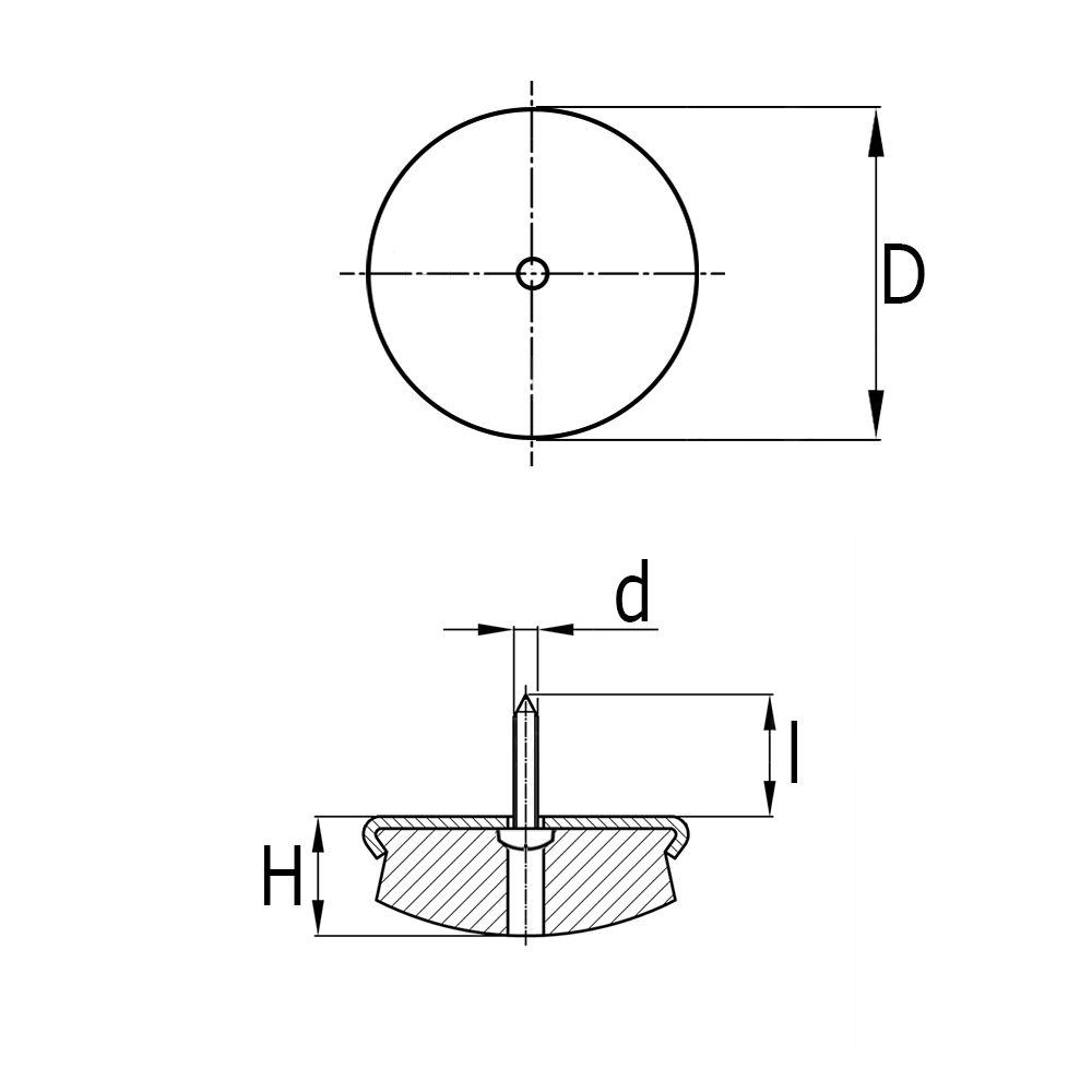 - Round screw-fit glides with a felt pad and metal cover are available in glide pad diameters from Ø 18 mm to Ø 35 mm inclusive