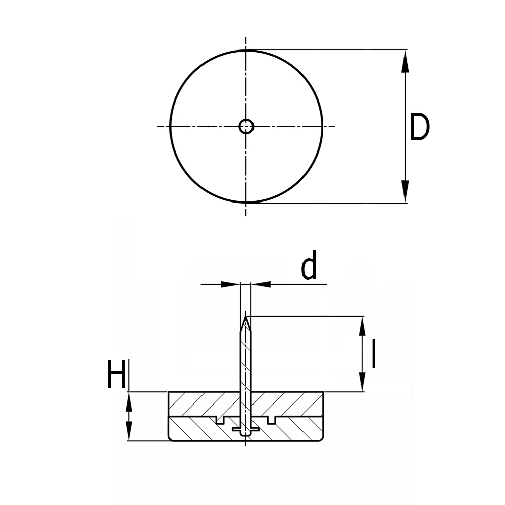 D=glide pad Ø, d=nail Ø, H=height, L=length of nail