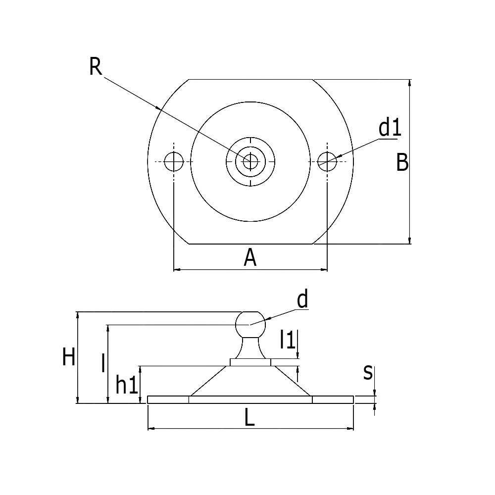 Gass spring plate bracket 55x44x2mm - ball joint Ø10 - M8 - max 650N - galvanized steel