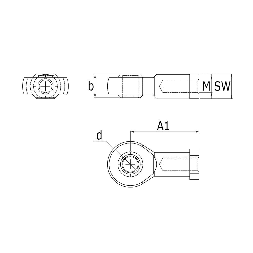 A1=Installation length, b=Width, d=Hole-Ø, M=Internal thread size, N=Max. static load capacity in Newton, SW=Spanner width, Type=Standarized type description