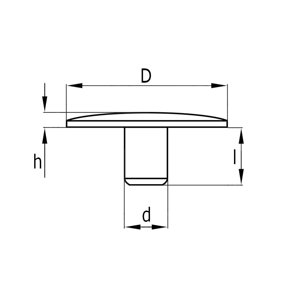 D=Head diameter, d=Ø-Pin, h=Head height, l=Pin length