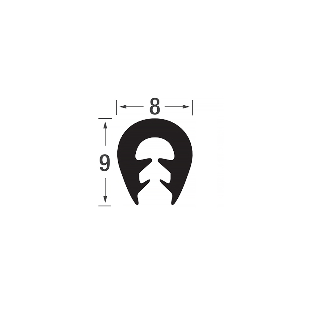 Flexible edge trim 9x8mm - TPE rubber - clamping range 0.5-2.5mmdrawing_1