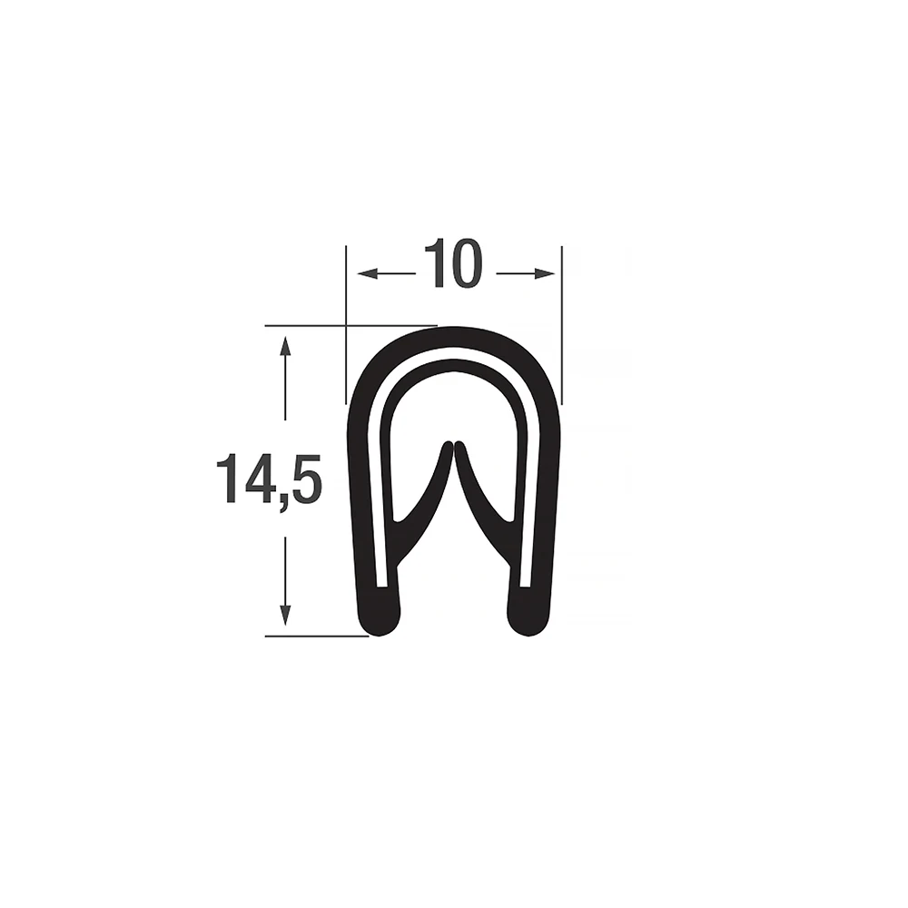 • Self-clamping PVC edge profile 14.5x10mm (HxW) available for clamping range 1-4mm sheet thickness