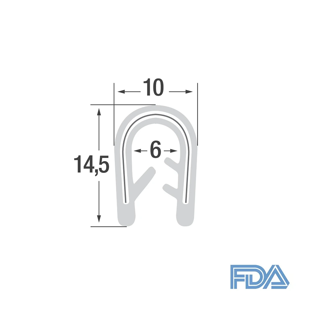 Due to its FDA approval, this silicone edge trim profile is particulary suitable for food processing and pharmacheutical applications.