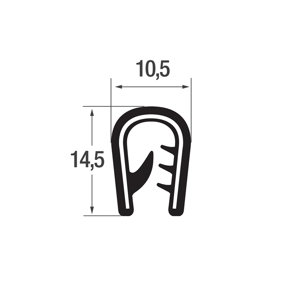 • Self-clamping PVC edge profile 14.5x10.5mm (HxW) available for clamping range 2-5mm sheet thickness