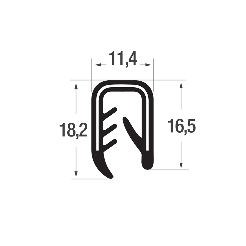 • Self-clamping PVC edge profile 16.5x11.4mm (HxW) available for clamping range 4-6 mm sheet thickness