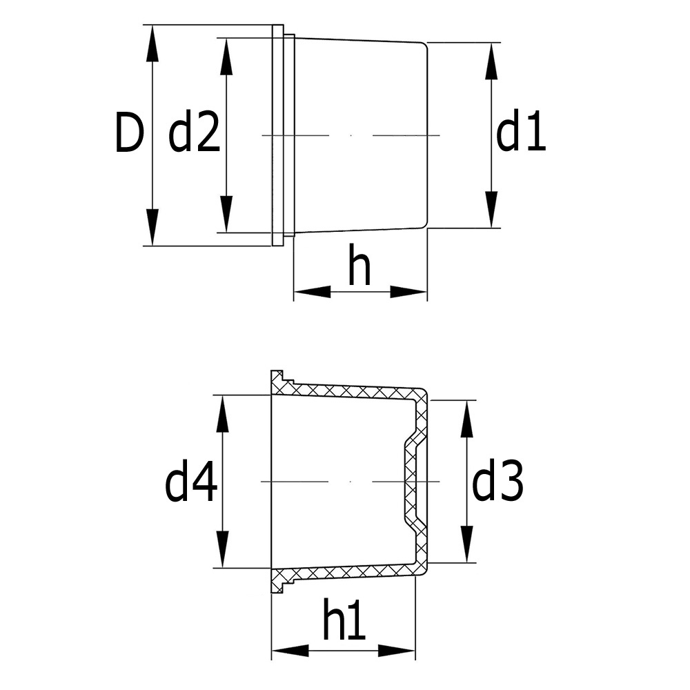 - Tapered protective plugs with a shoulder for round holes, tube ends, internal and external threads are available for hole sizes from Ø 4.4 mm to Ø 102.5 mm inclusive or for tapped hole sizes from M6 to M50 inclusive