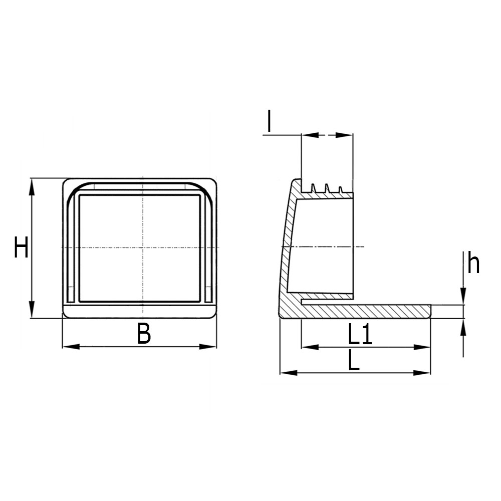 LegendB=width, H=height, h=glide thickness, L=glide length, l=shaft length, Model=wall thickness, Tube size=external tube dimensions