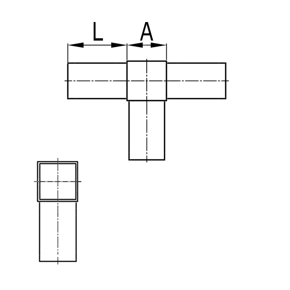 d=shoulder length, L=shaft length, Tube size=external box-section tube dimensions and wall thickness