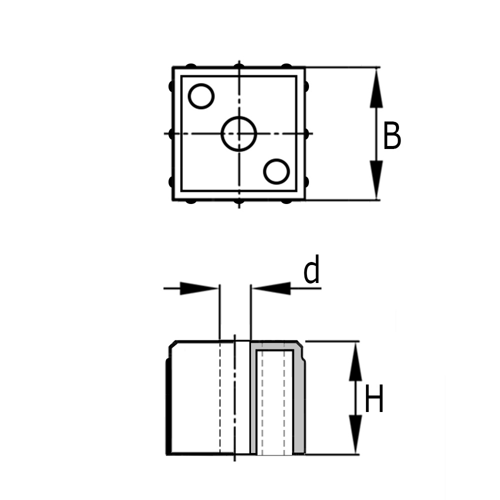 Block 20X20X1,5 PA with glass fibre reinforcement grey