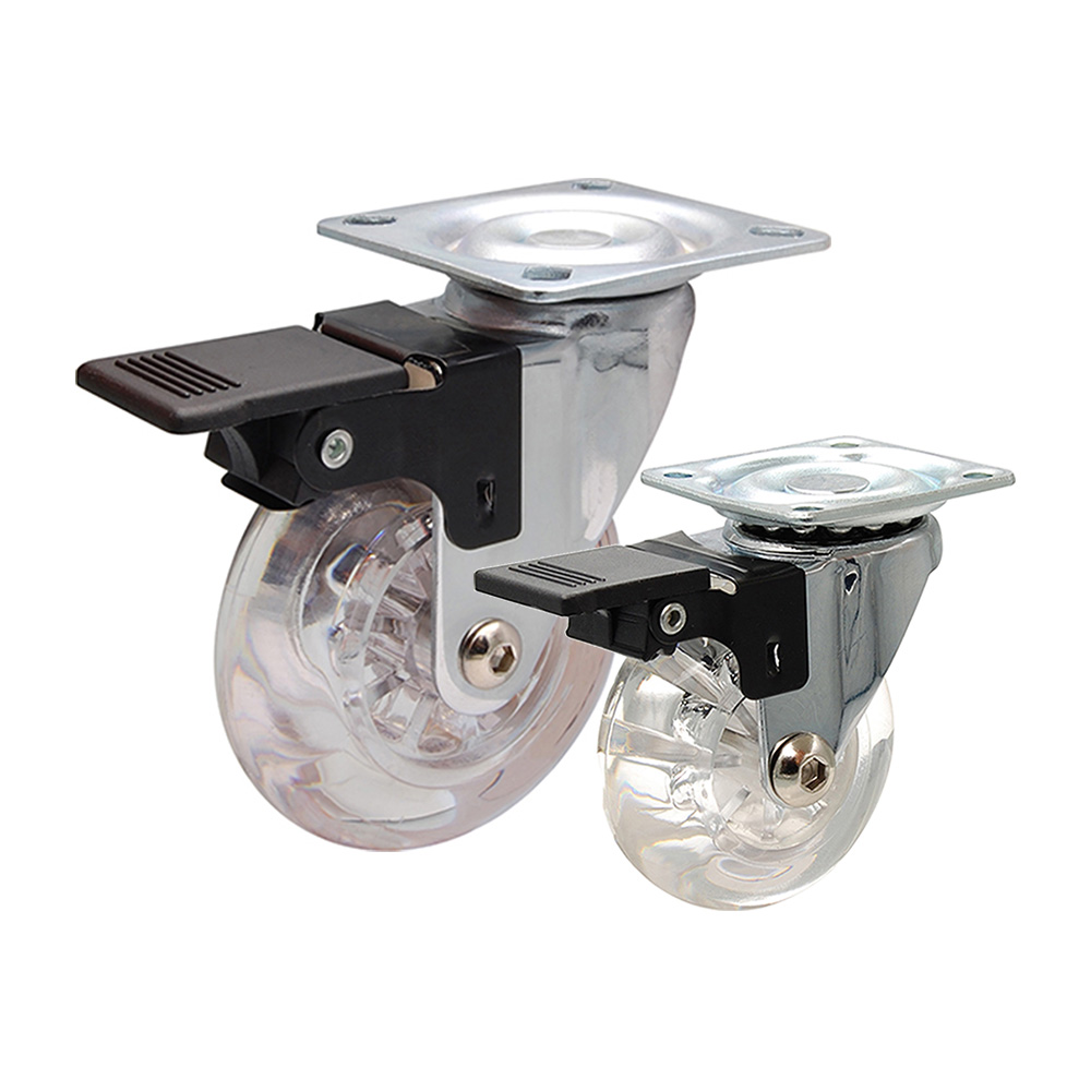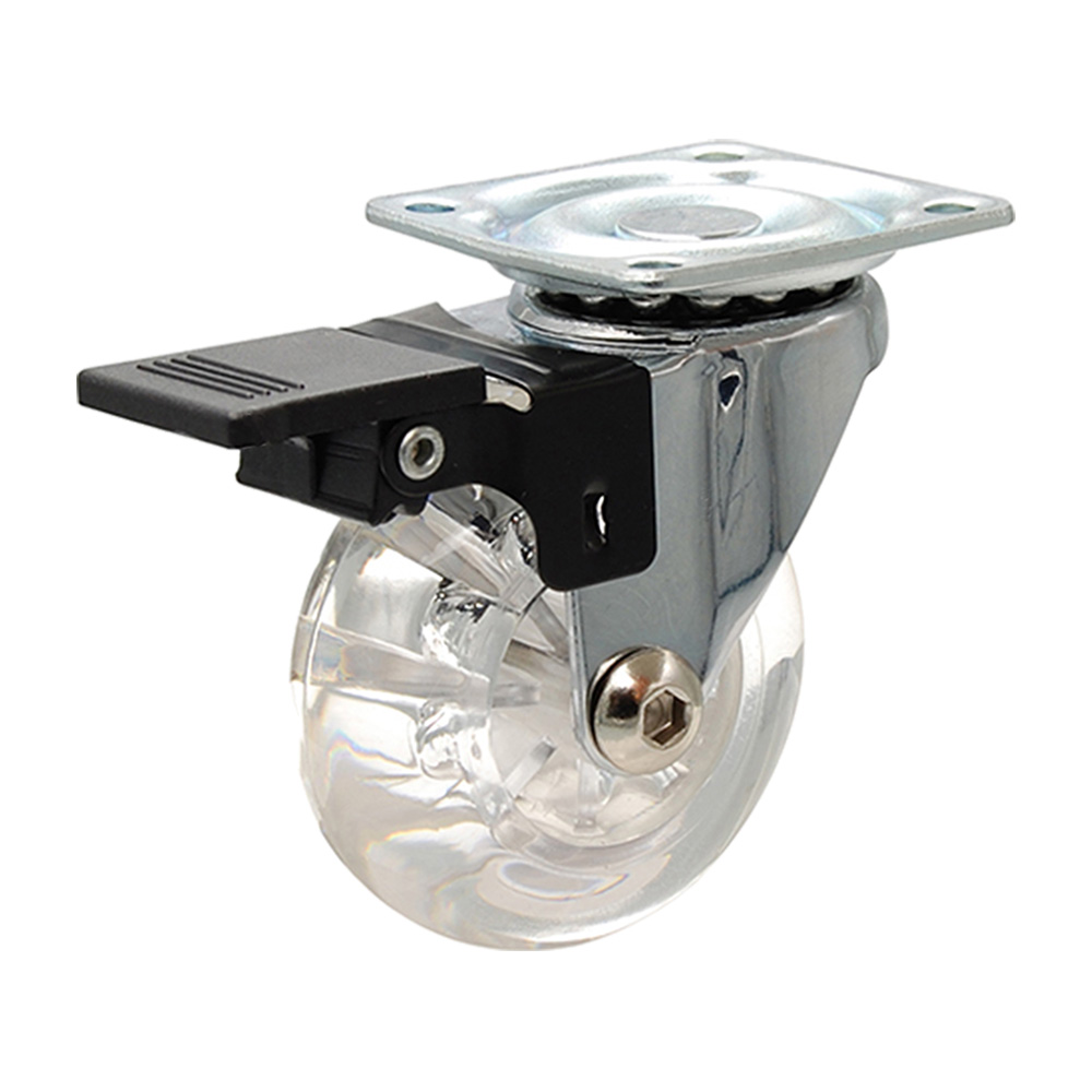 Design furniture swivel castor inline skate Ø50 TPE transparent w/ brake - plain bearing - plate fixing