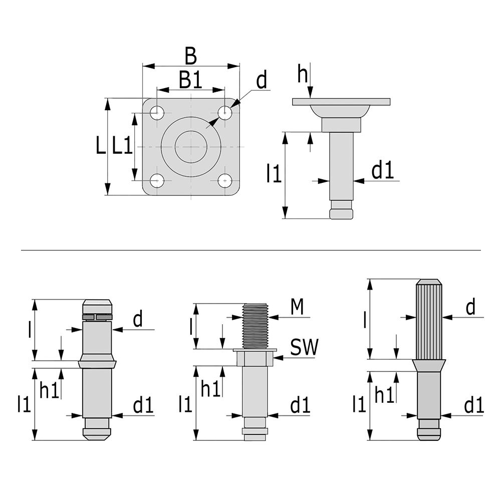 Hygienic castors polyamid - max 800 kg - stainless steel forks