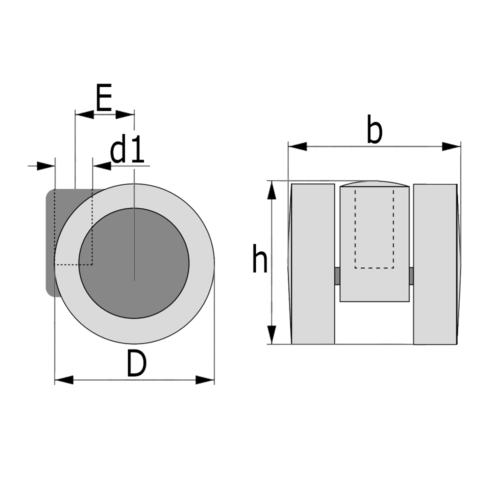 Twin wheel furniture castor Ø36 with PU tread - black & grey