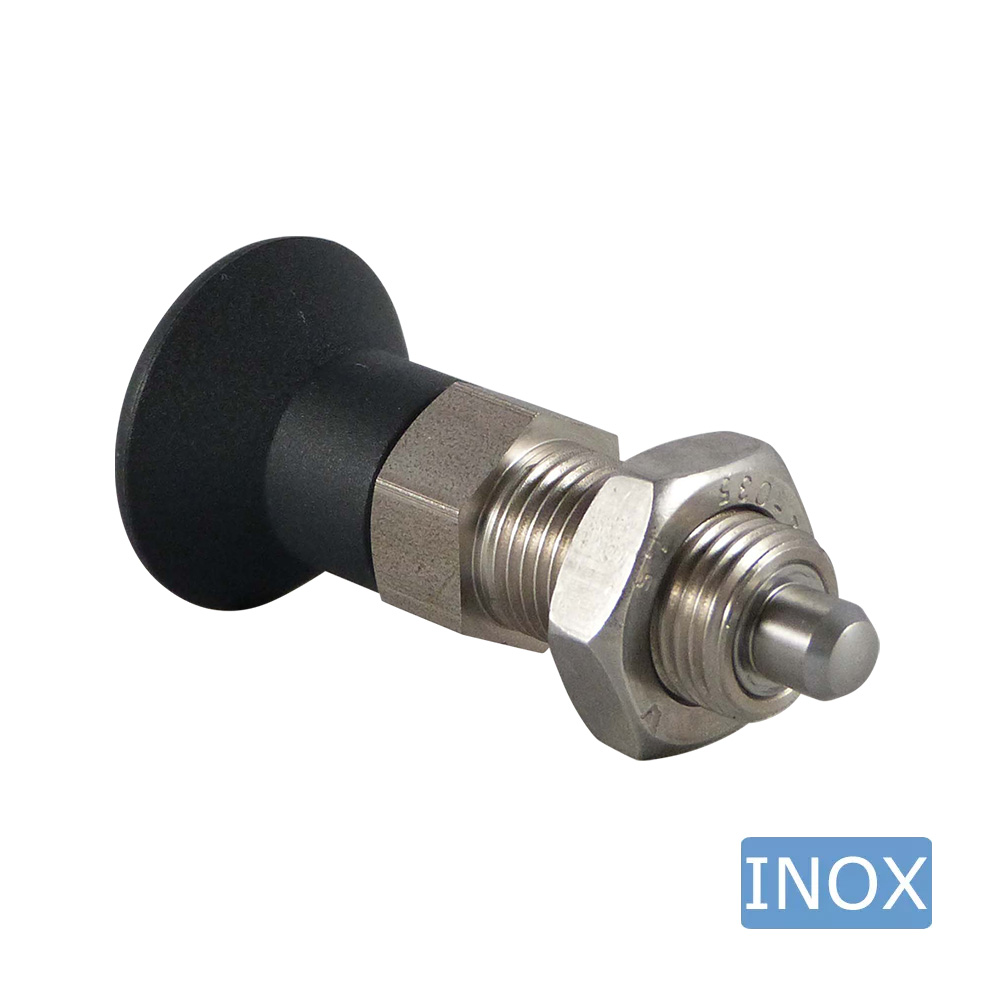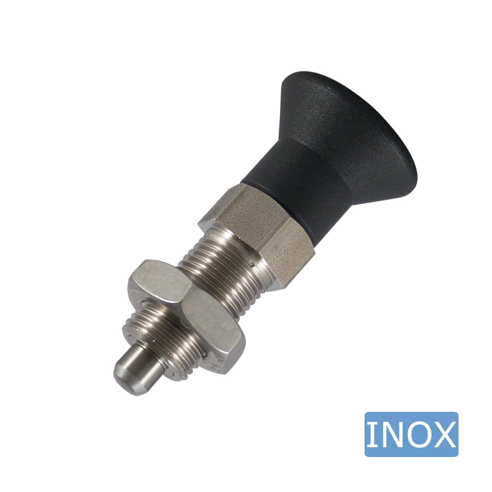Indexing plungers, knob 33mm, M16x1,5 - pin 8mm - stainless steel