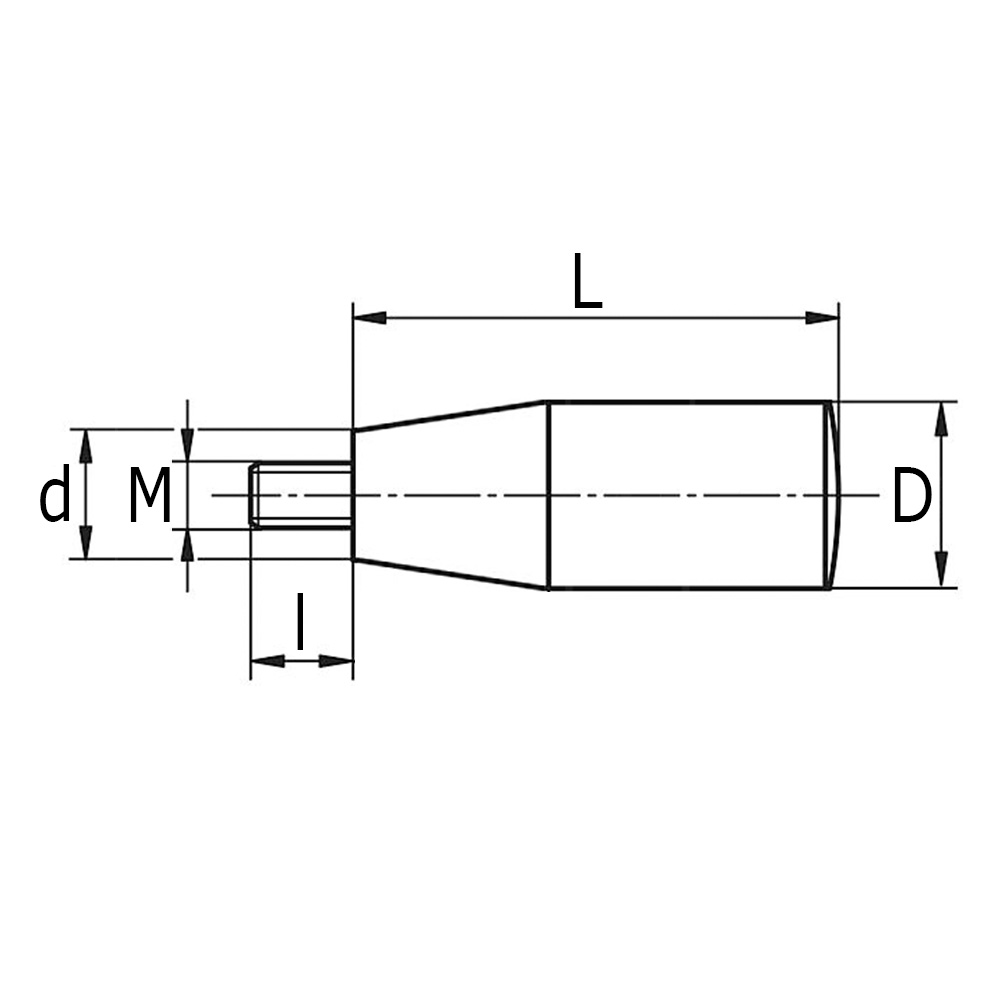 D=handle Ø-large, d=handle Ø-small, L=handle length, l=thread length, M=thread size