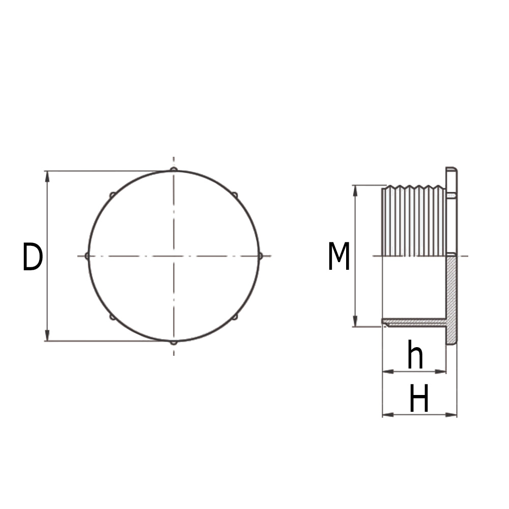 BSP=Thread BSP/GAS G, D=Outer cap-Ø, H=Total height, M=Thread metric, UNF=Thread UNF