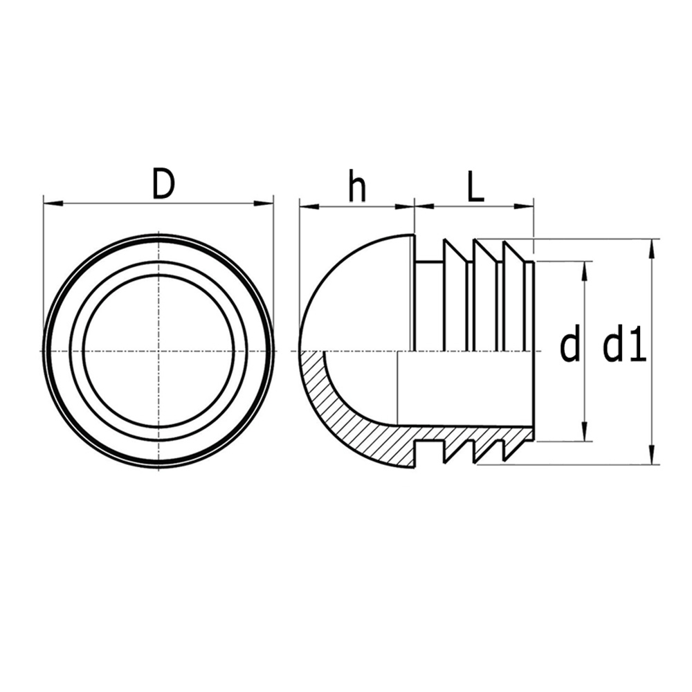 End cap inserts without ribbing - domed head - heavy-duty quality - for round tube