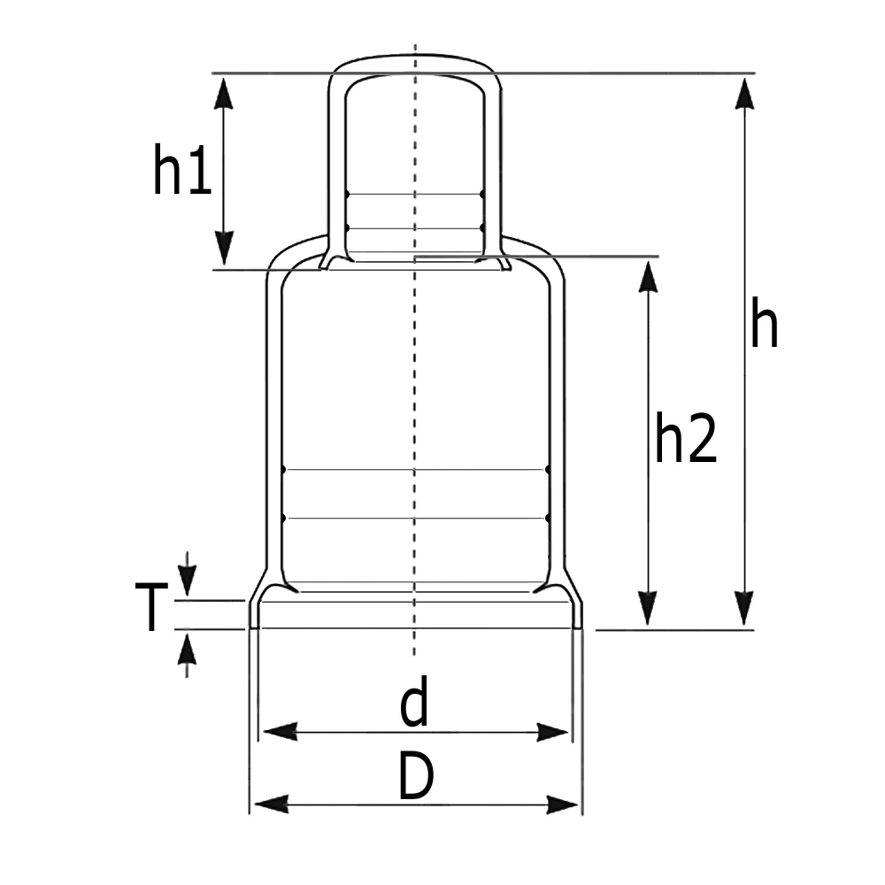 Telescopic round bolt and nut protection cap M27 SW 41 H=154 black with washer cover