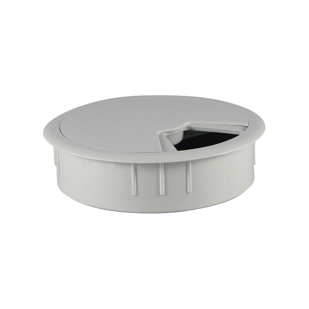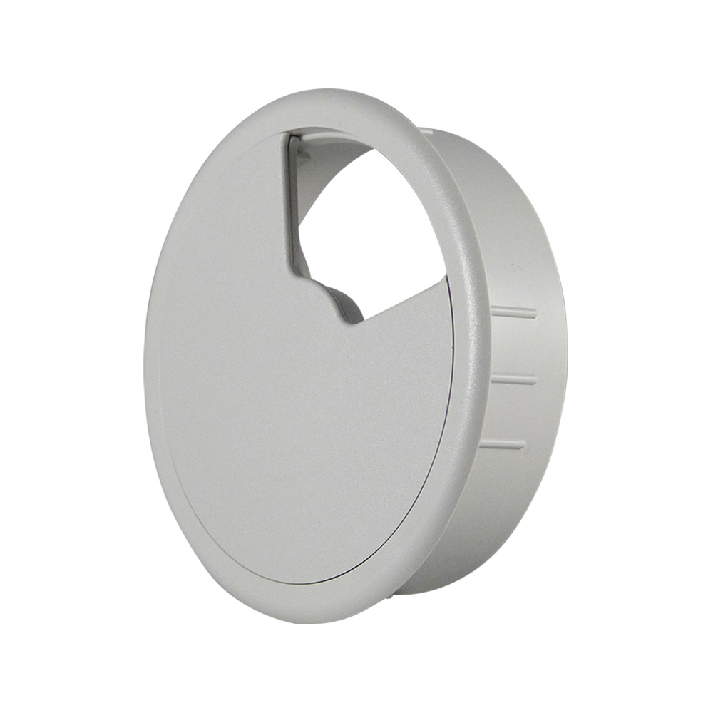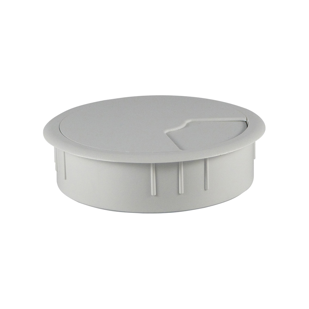 Desk cable grommet aluminium – radiused softclose lid – square / rectangular