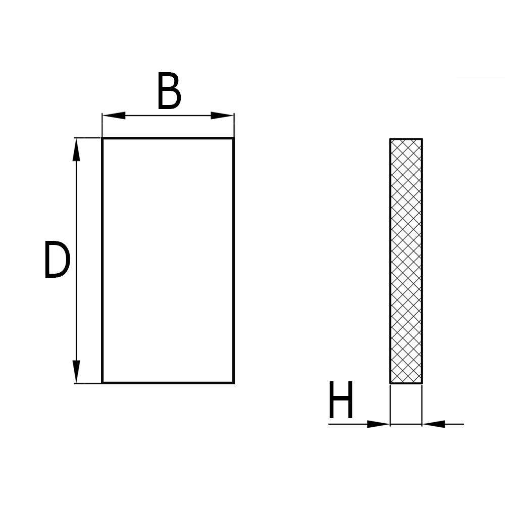 Amount=number of felt pads per sheet, B=width, H=felt thickness, L=length, Version=felt size
