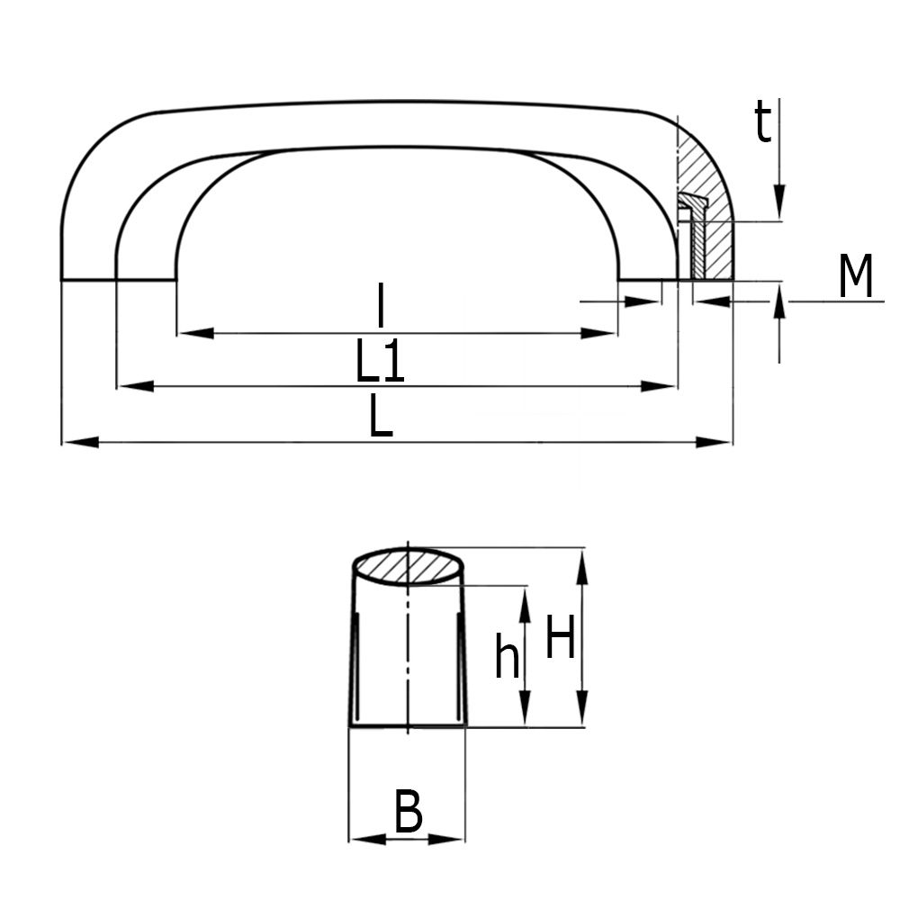 H=height, h=height, L=length, L1=center-to-center distance of threaded inserts, l=length, M=threaded insert size