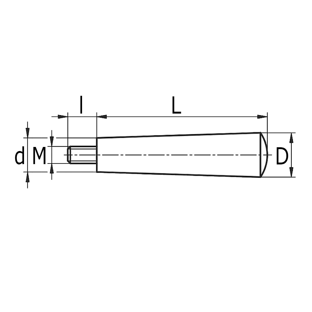 D=handle Ø-large, d=handle Ø-small, L=handle length, l=thread length, M=thread size