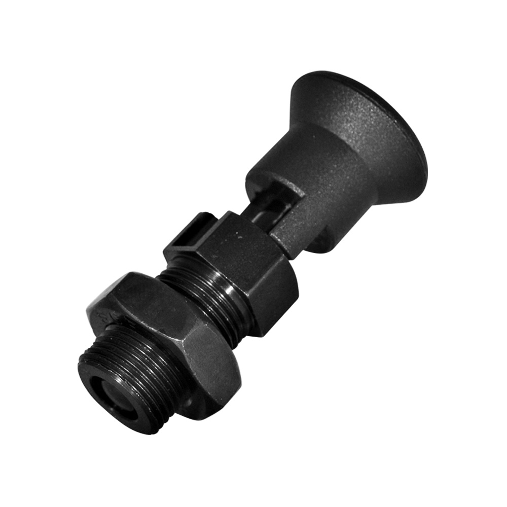 Material: Knob – PA (Polyamid), Metal parts – blackenend steel, Plunger – hardened (grade 5.8) blackened steel