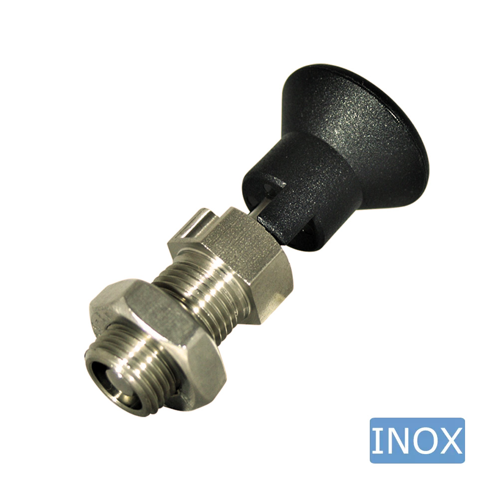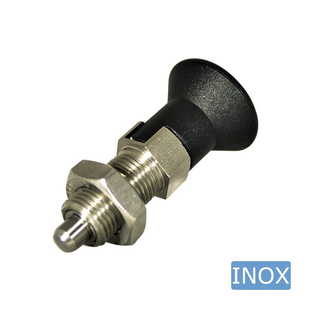 Material: Knob – PA (Polyamid), Housing + Nut – stainless steel (1.4305), Plunger – hardened stainless steel (1.4304)