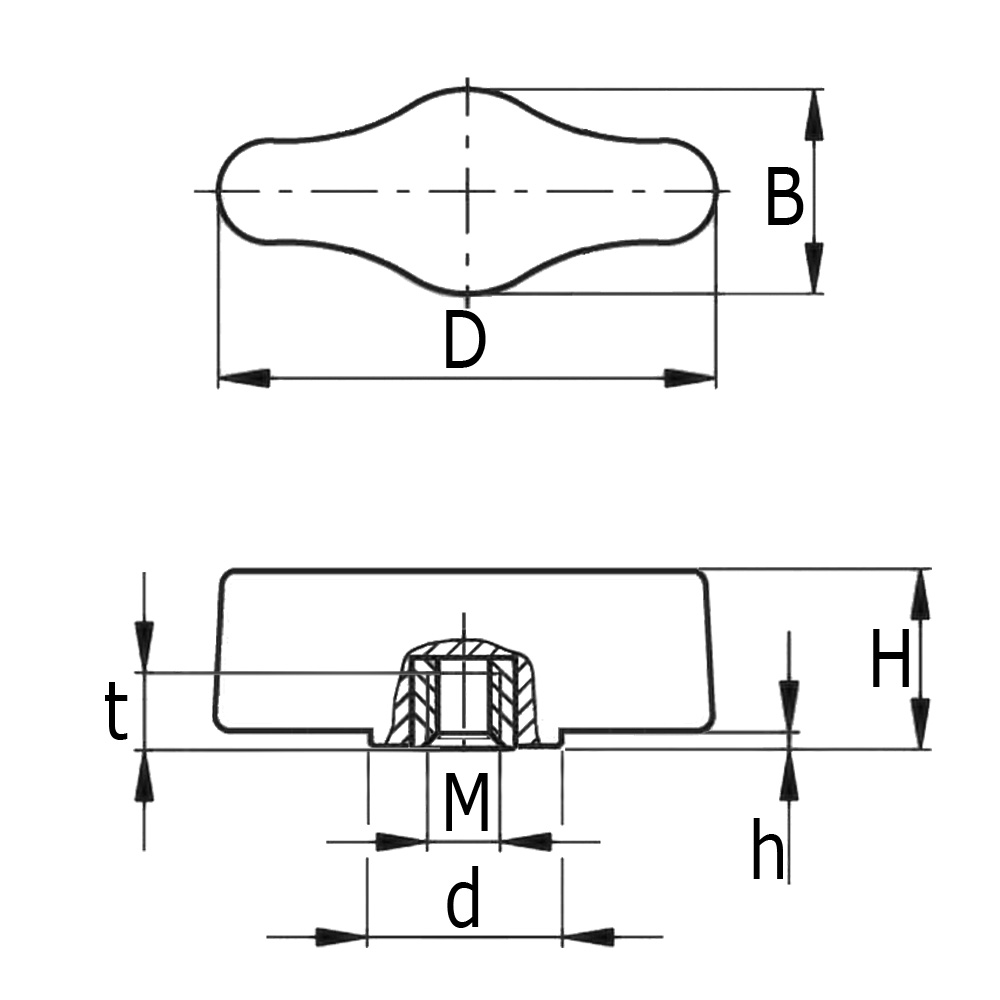 - Plastic wing nuts with a metal thread insert are available in M4 to M6 inclusive