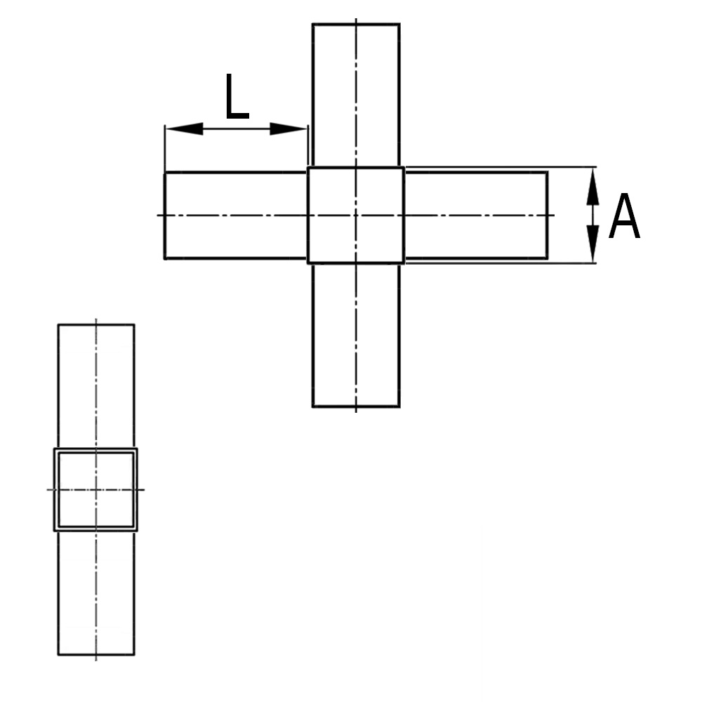 - Suitable for creating crosspiece connections with square tubes made from aluminium, steel, stainless steel