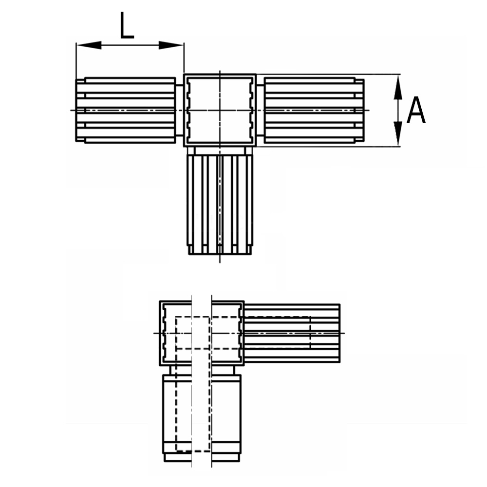 - Suitable for creating three-dimensional Tee connections with square tubes made from aluminium, steel, stainless steel